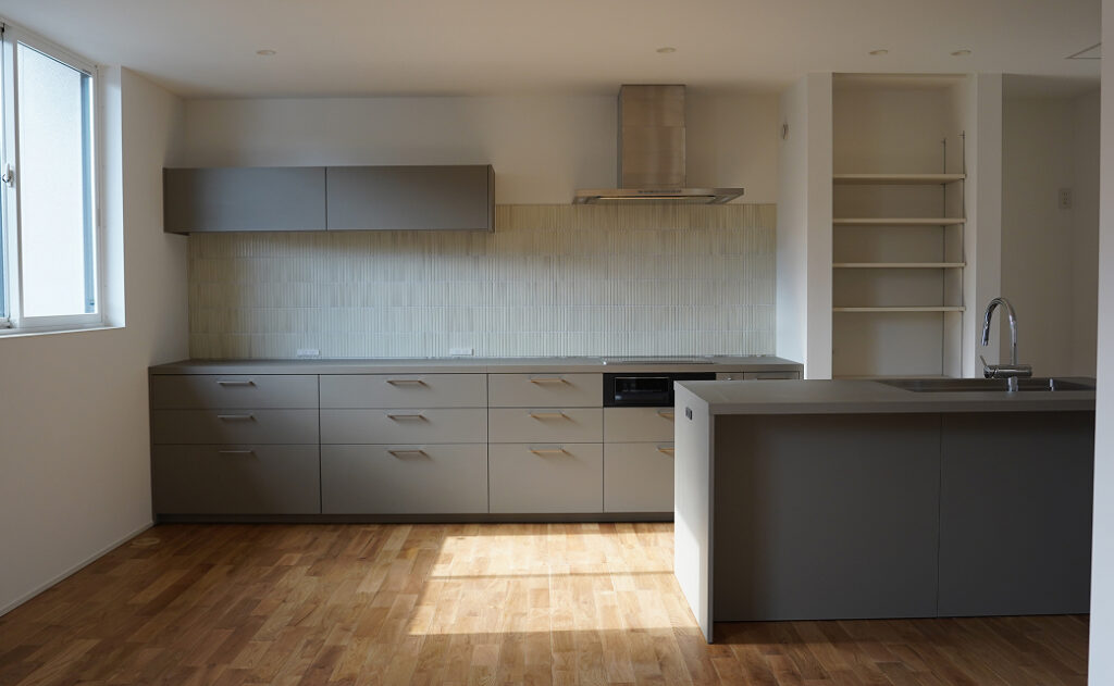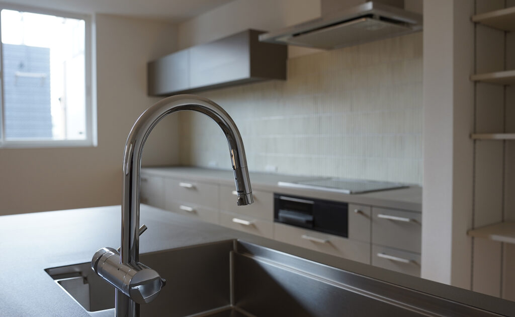point.3 グラフテクトとタイルをあしらった壁面が印象的なキッチン