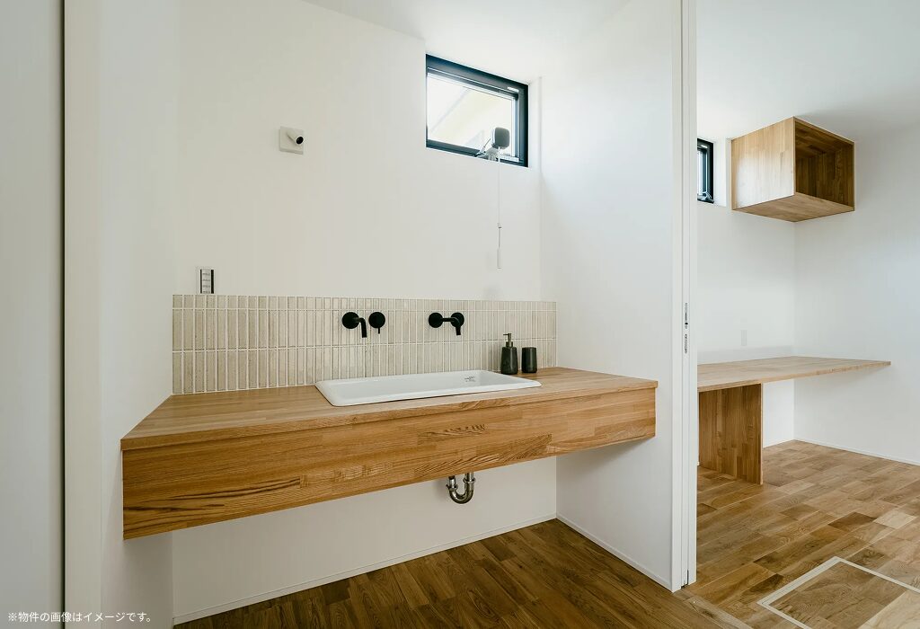 point.4 こだわりのタイルをあしらった造作洗面