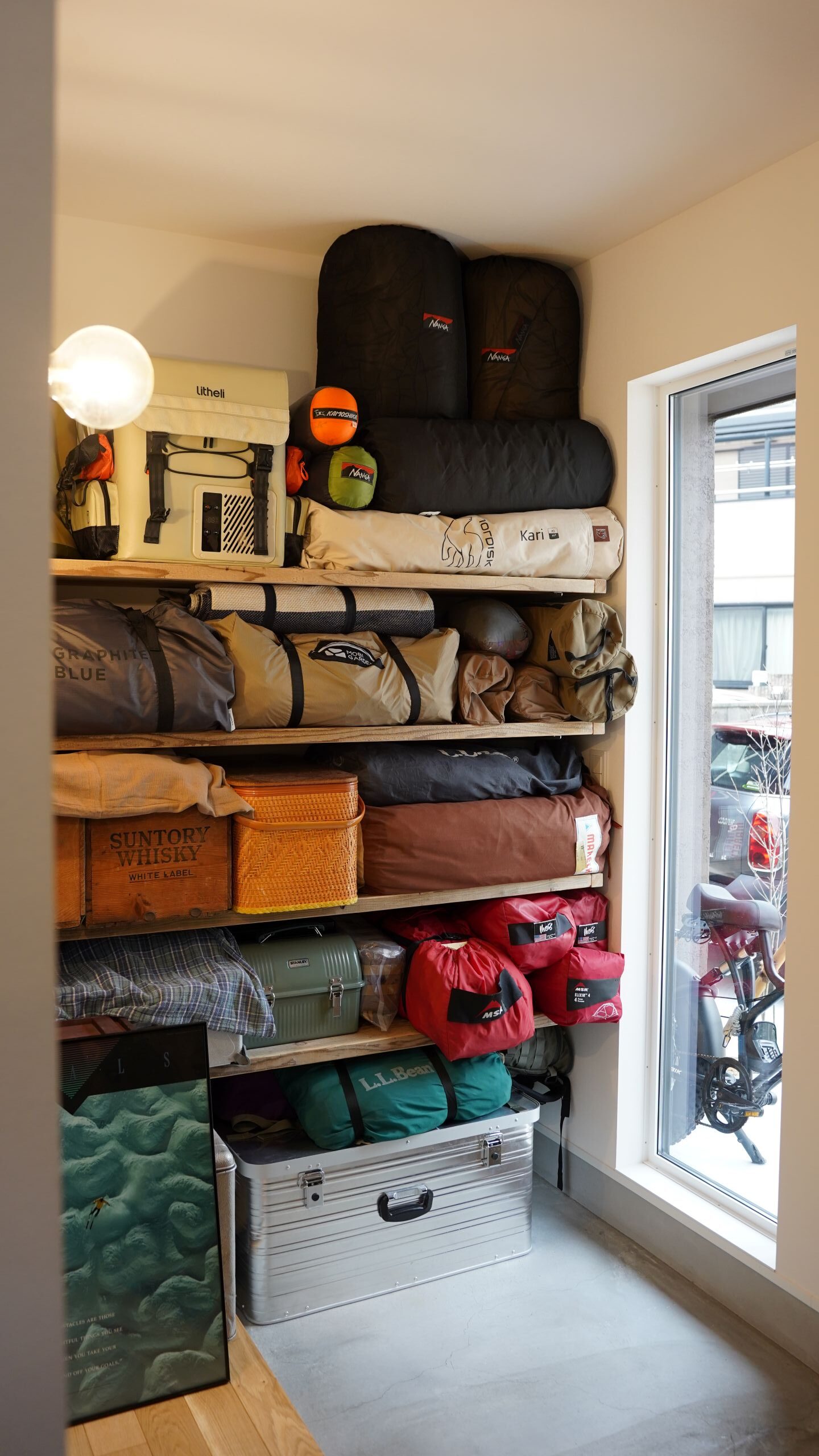 そして建築家が提案していた通り、玄関収納には実際にキャンプ用品が敷き詰められていますね!